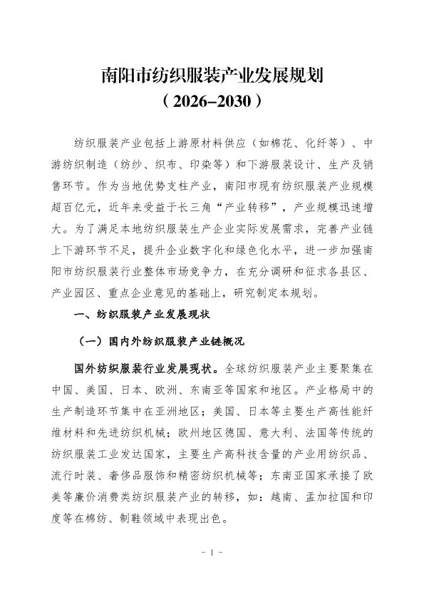 【南阳市纺织服装产业发展工作专班】【202510】南阳市纺织服装产业发展规划 (2026-2030)-34页