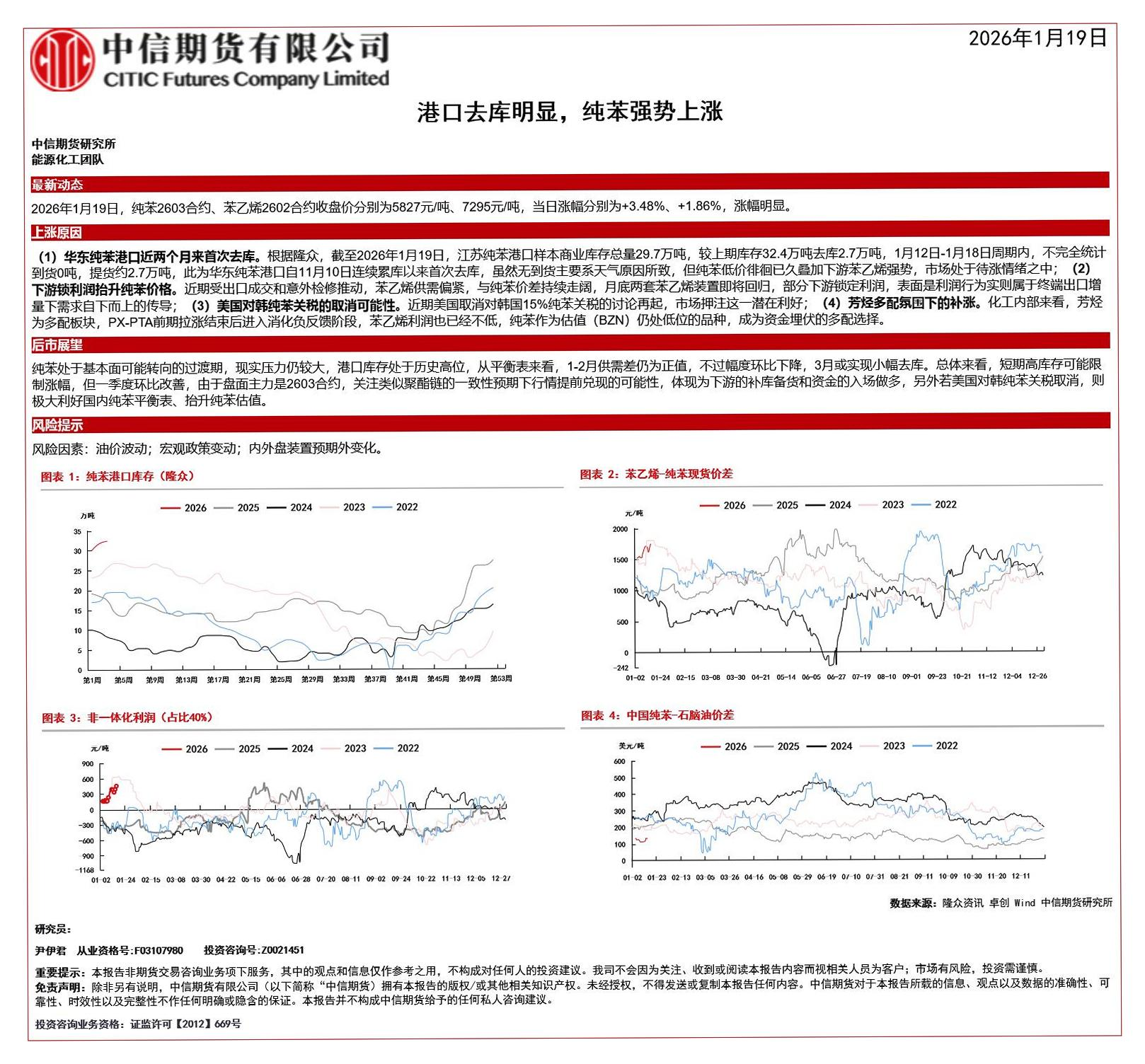 【中信期货】【202601】港口去库明显_纯苯强势上涨-1页