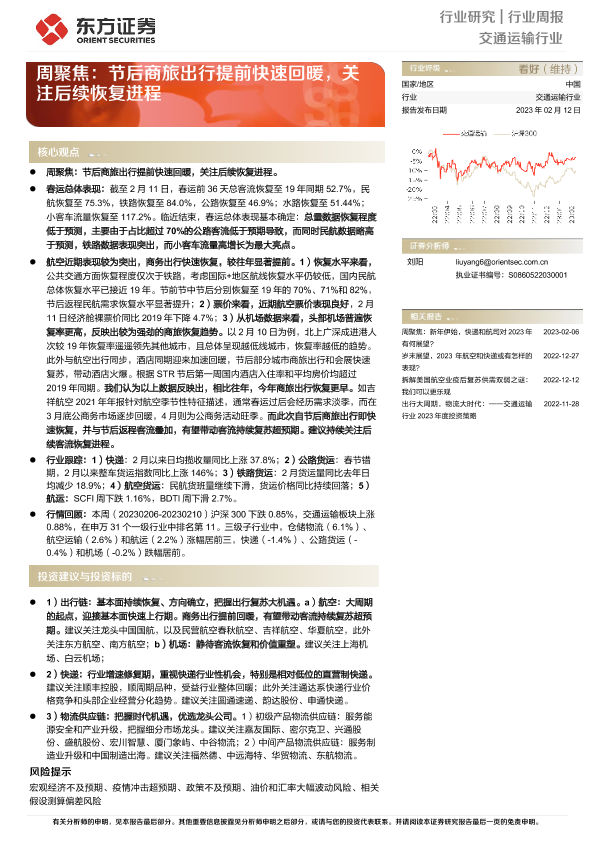 【东方证券】【20230212】交通运输行业周聚焦:节后商旅出行提前快速回暖,关注后续恢复进程-20页