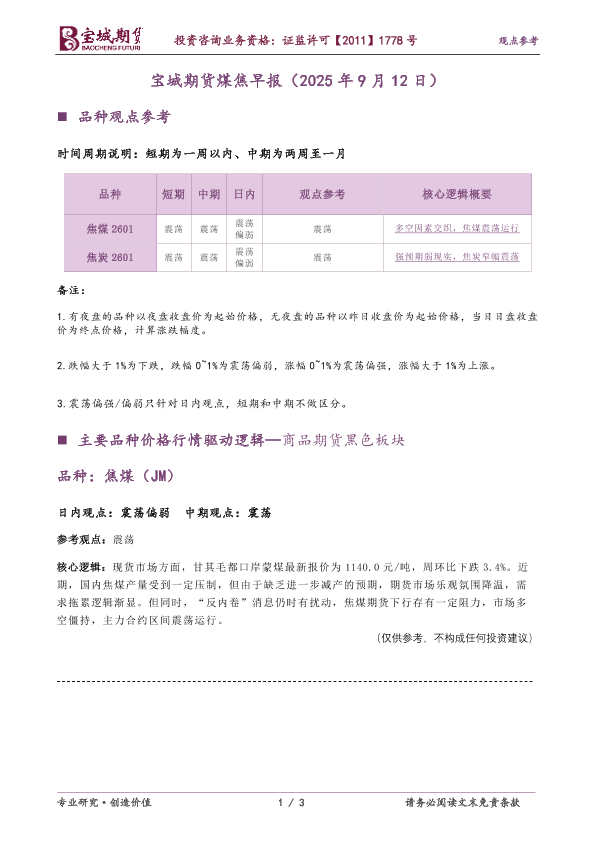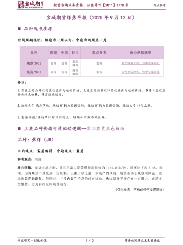 【宝城期货】【202509】宝城期货煤焦早报-3页