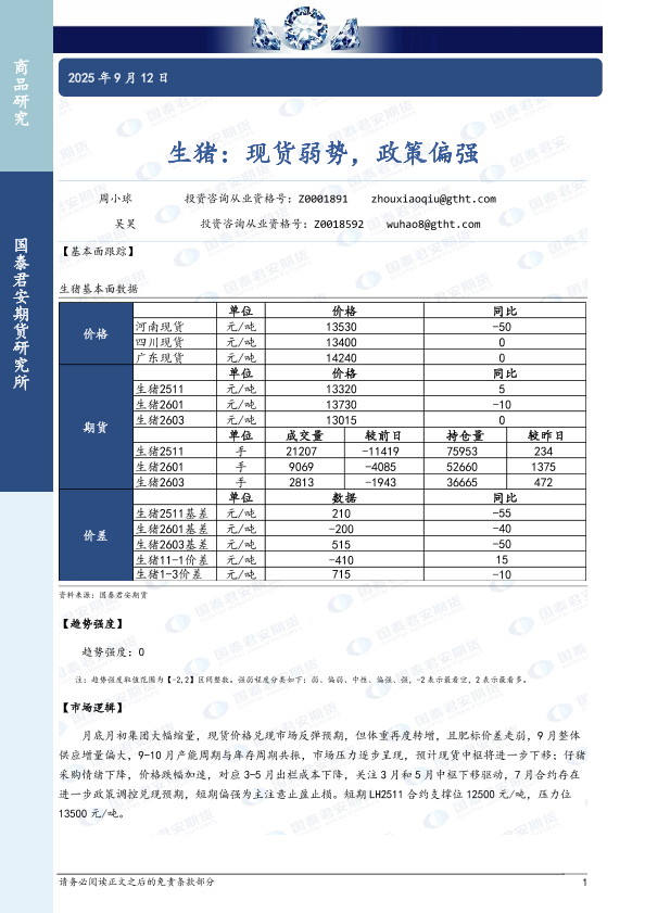 【国泰君安期货】【202509】生猪:现货弱势,政策偏强-2页