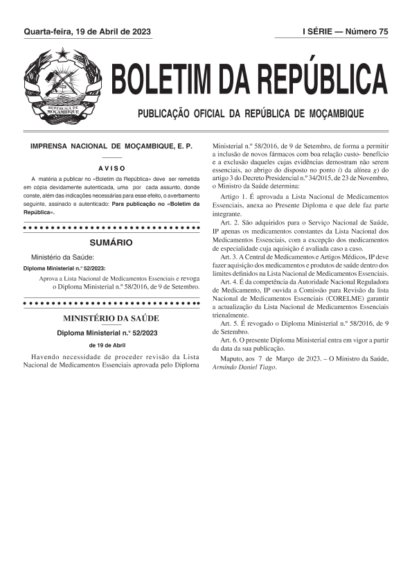 IMPRENSA NACIONAL DE MOÇAMBIQUE&E. P. 卫生和社会工作 2023年 PDF 1.79 MB