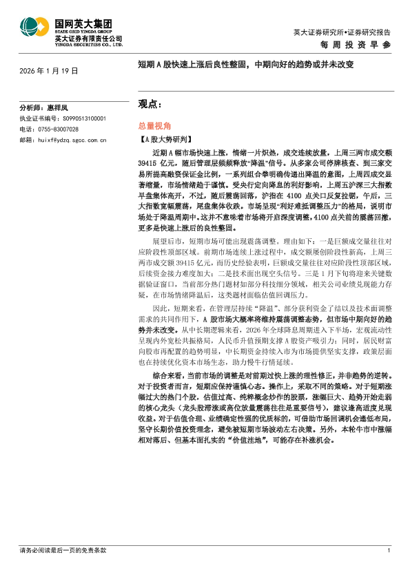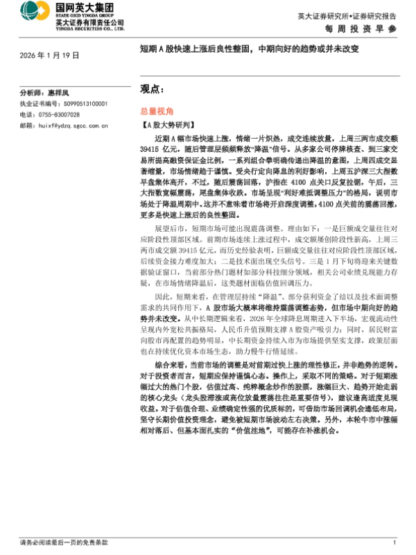 【英大证券】【202601】短期A股快速上涨后良性整固,中期向好的趋势或并未改变-6页