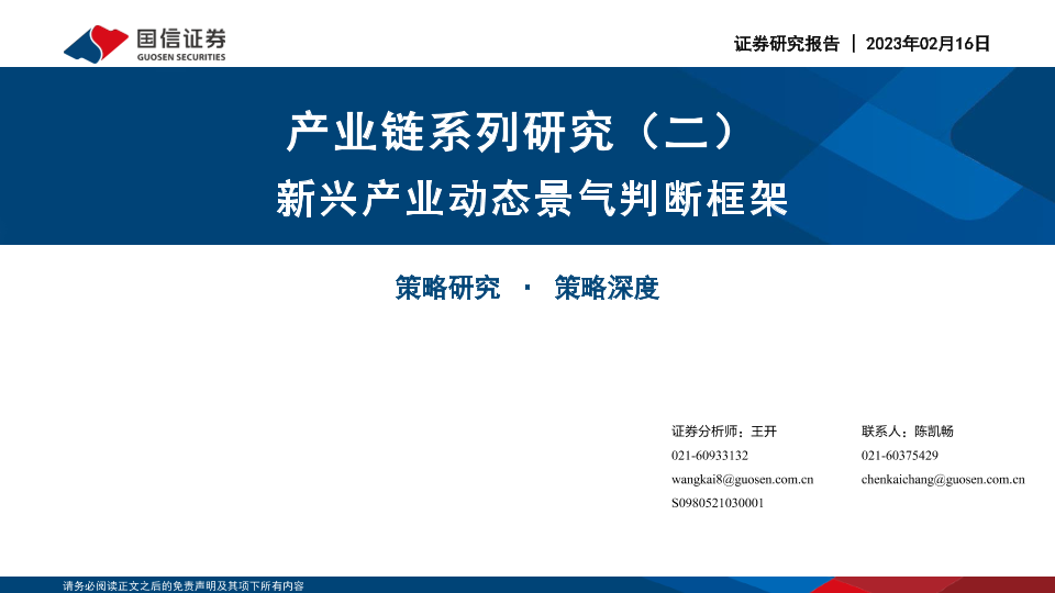 【国信证券】【20230216】产业链系列研究(二):新兴产业动态景气判断框架-60页
