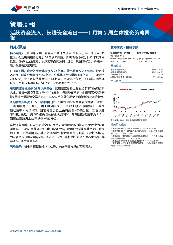 【国信证券】【202601】1月第2周立体投资策略周报:活跃资金流入,长线资金流出-11页