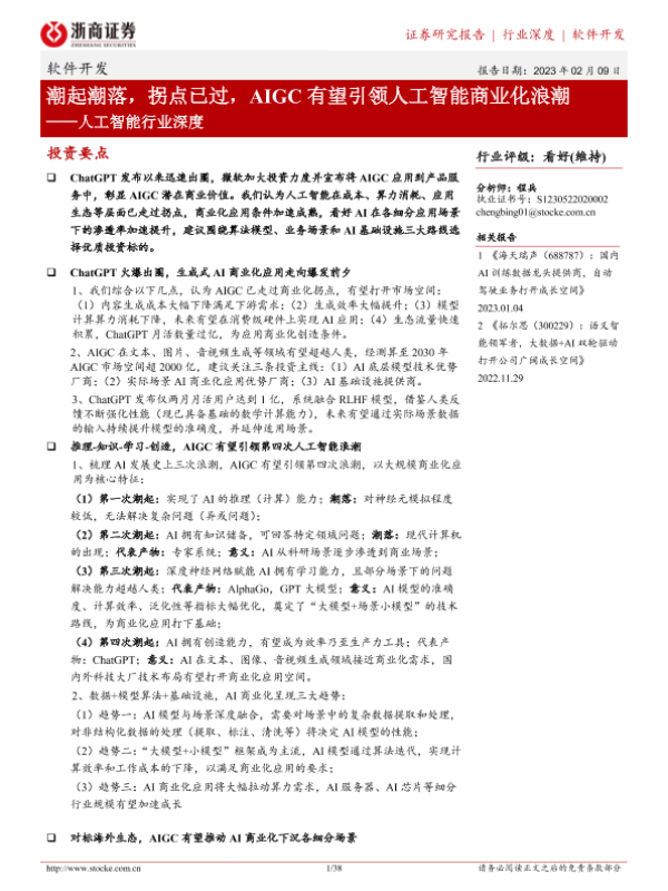 【浙商证券】【20230209】潮起潮落,拐点已过,AIGC有望引领人工智能商业化浪潮-38页