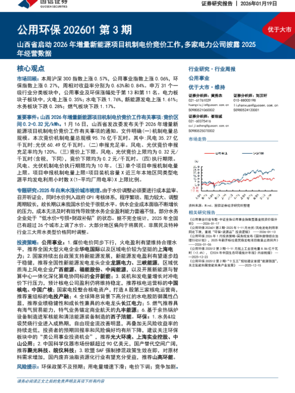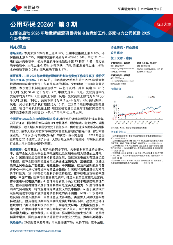 【国信证券】【202601】公用环保行业202601第3期:山西省启动2026年增量新能源项目机制电价竞价工作,多家电力公司披露2025年经营数据-33页