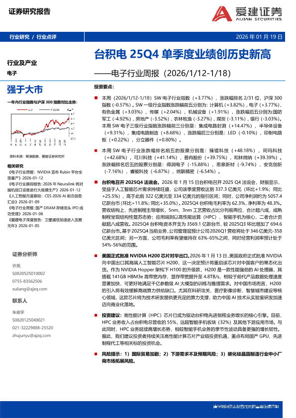 【爱建证券】【202601】电子行业周报:台积电25Q4单季度业绩创历史新高-12页