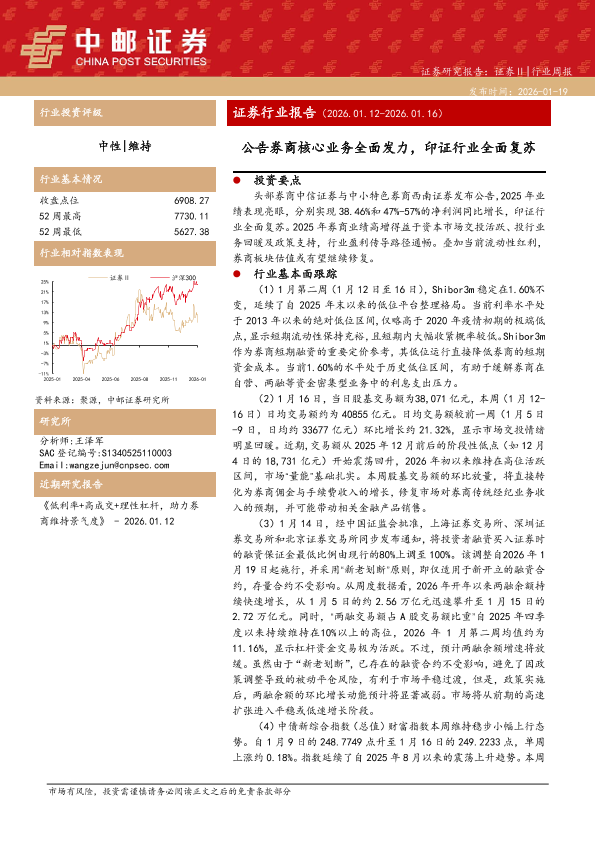 【中邮证券】【202601】证券行业报告:公告券商核心业务全面发力,印证行业全面复苏-12页