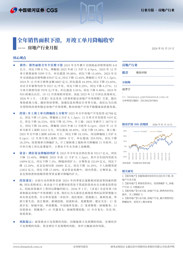 【银河证券】【202601】全年销售面积下滑,开竣工单月降幅收窄-12页