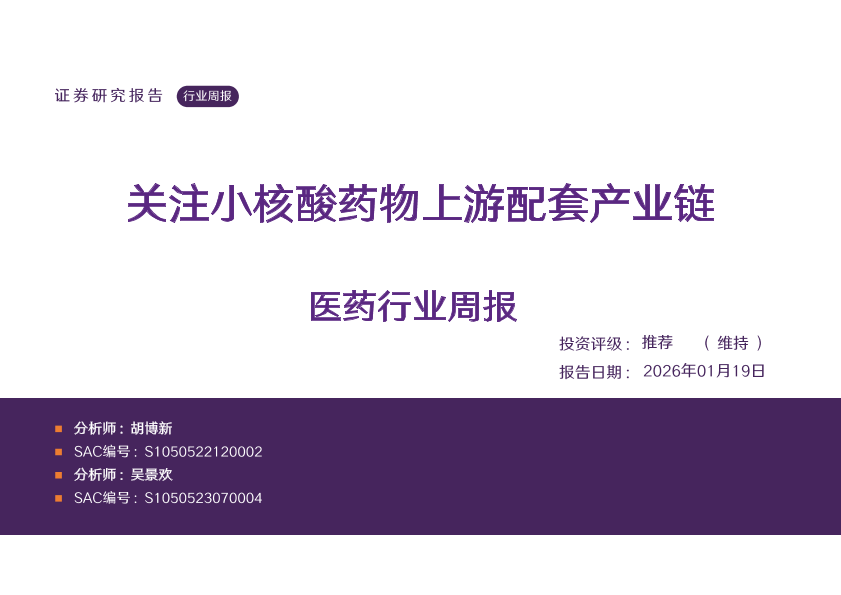 【华鑫证券】【202601】关注小核酸药物上游配套产业链医药行业周报-32页