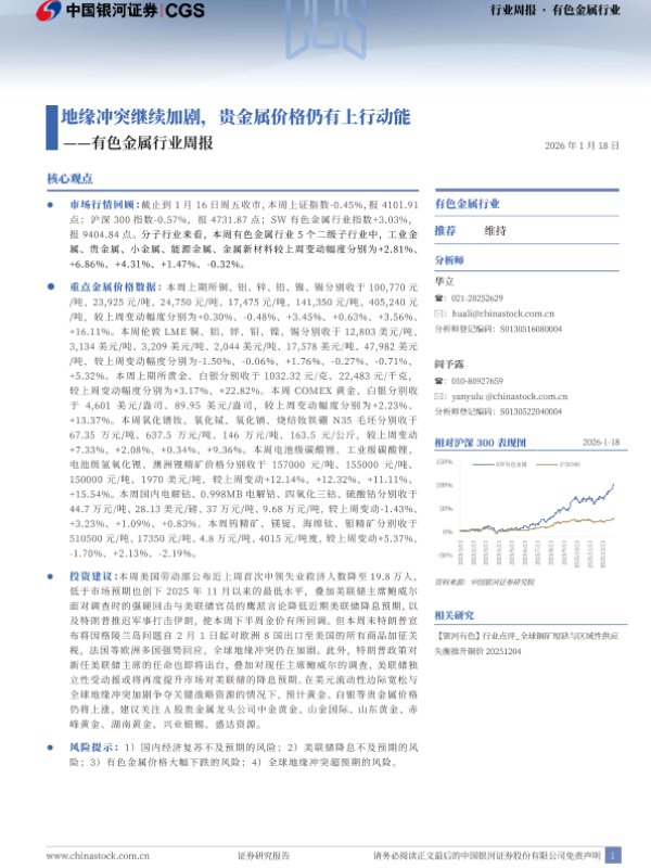 【银河证券】【202601】地缘冲突继续加剧,贵金属价格仍有上行动能——有色金属行业周报-21页