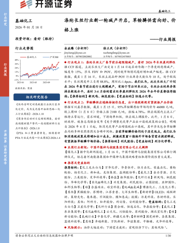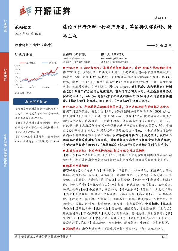 【开源证券】【202601】涤纶长丝行业新一轮减产开启,草铵膦供需向好、价格上涨-30页
