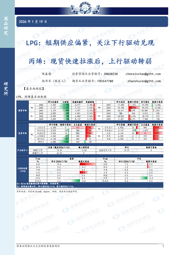 【国泰君安期货】【202601】LPG:短期供应偏紧,关注下行驱动兑现 丙烯:现货快速拉涨后,上行驱动转弱-4页