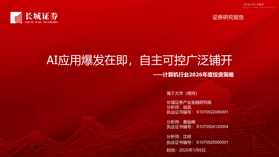 【长城证券】【202601】2026年度投资策略_AI应用爆发在即_自主可控广泛铺开-45页