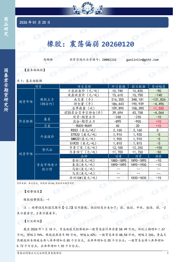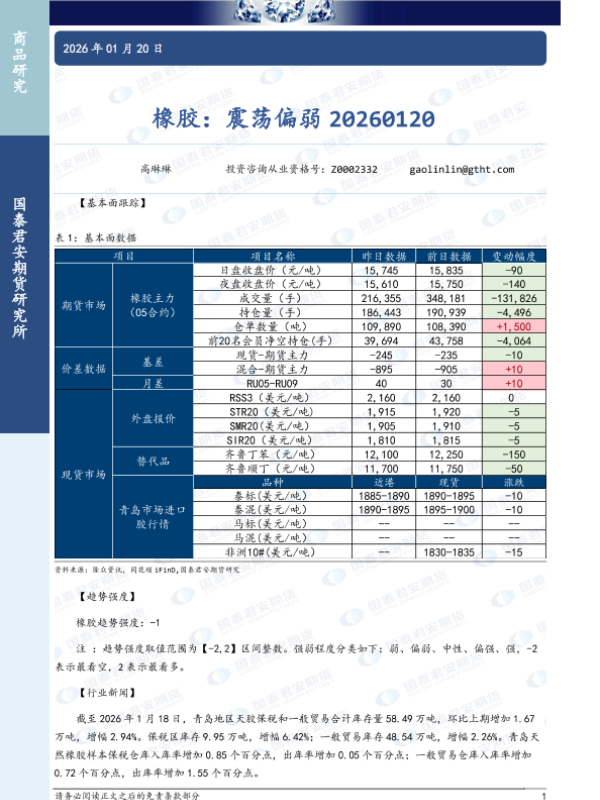 【国泰君安期货】【202601】橡胶:震荡偏弱-3页
