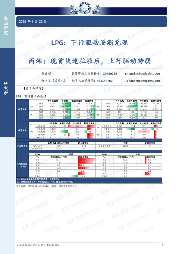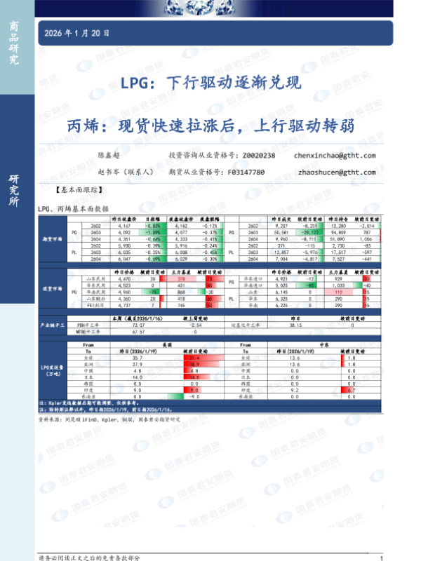 【国泰君安期货】【202601】LPG:下行驱动逐渐兑现 丙烯:现货快速拉涨后,上行驱动转弱-4页