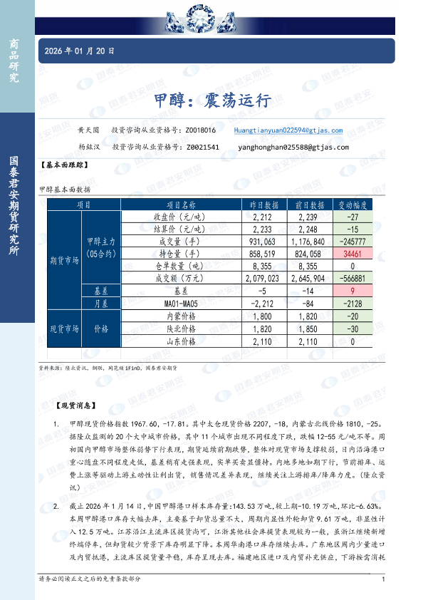 【国泰君安期货】【202601】甲醇:震荡运行-3页