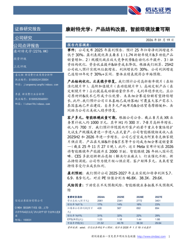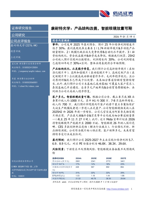 【信达证券】【202601】康耐特光学:产品结构改善,智能眼镜放量可期-4页