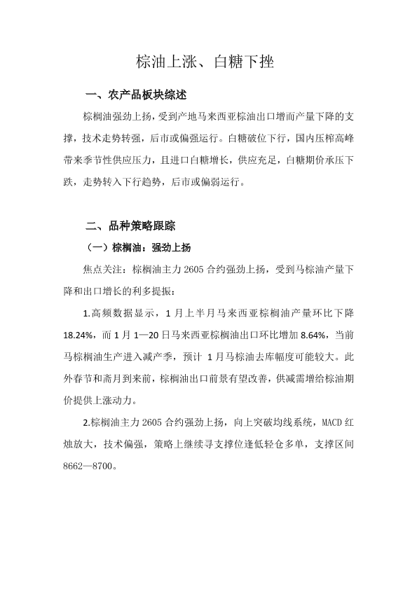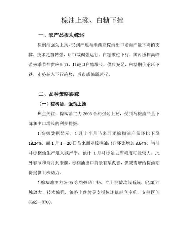 【天富期货有限公司】【202601】棕油上涨、白糖下挫-8页