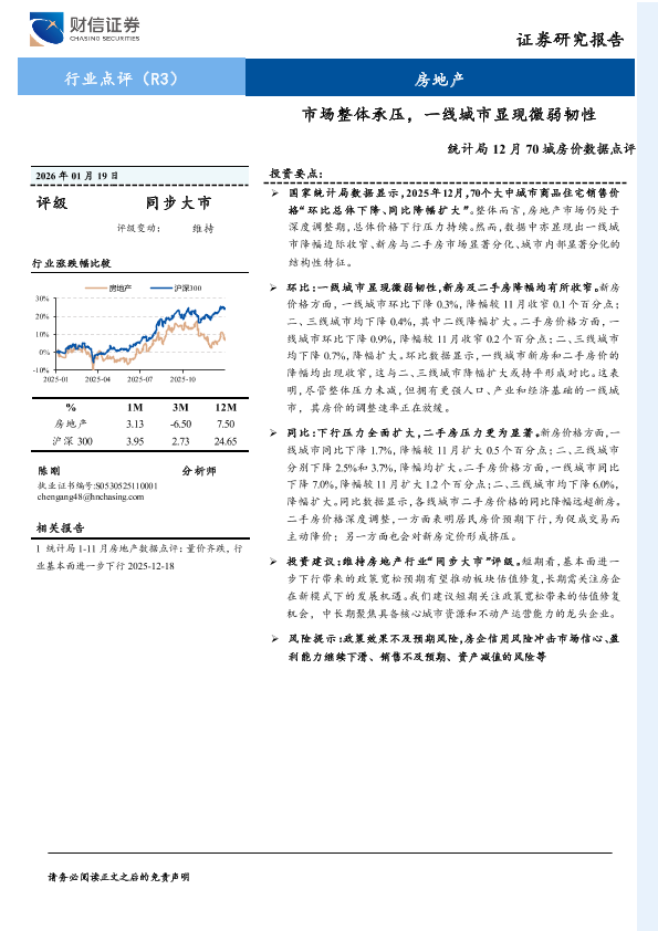 【财信证券】【202601】统计局12月70城房价数据点评:市场整体承压,一线城市显现微弱韧性-2页