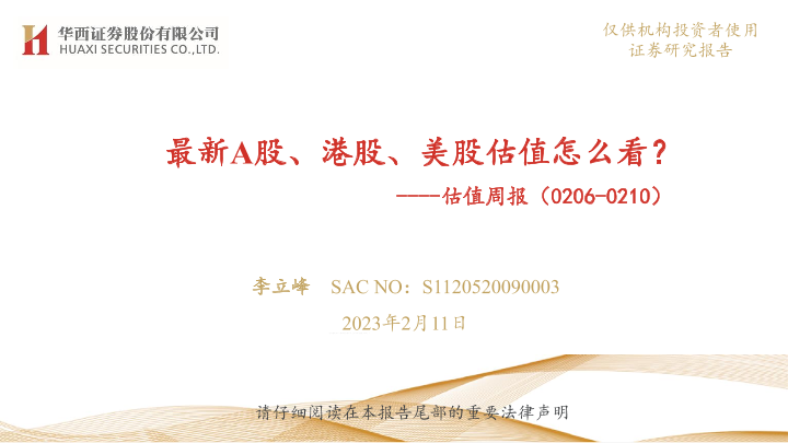 【华西证券】【20230211】估值周报:最新A股、港股、美股估值怎么看?-37页