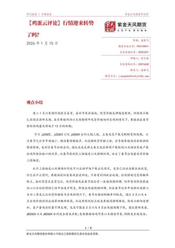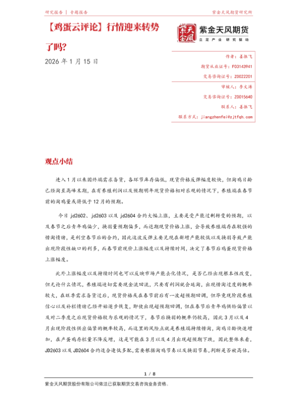 【紫金天风期货】【202601】鸡蛋云评论|行情迎来转势了吗?-8页