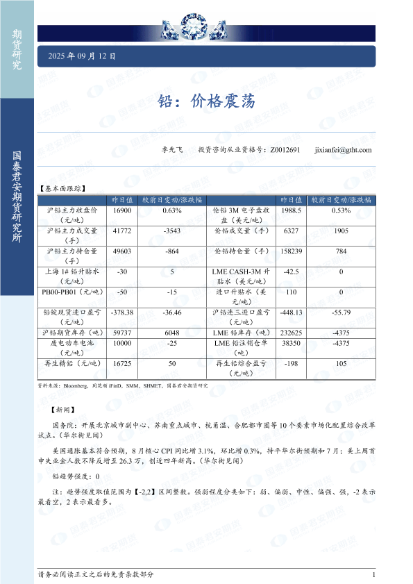 【国泰君安期货】【202509】铅:价格震荡-2页