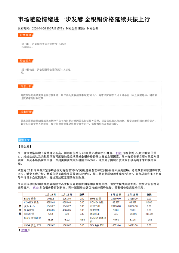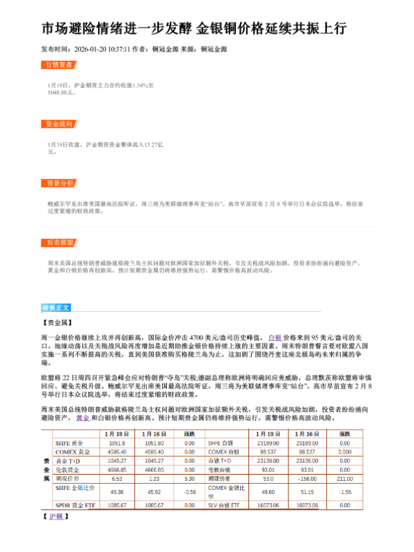 【铜冠金源期货】【202601】市场避险情绪进一步发酵 金银铜价格延续共振上行-2页