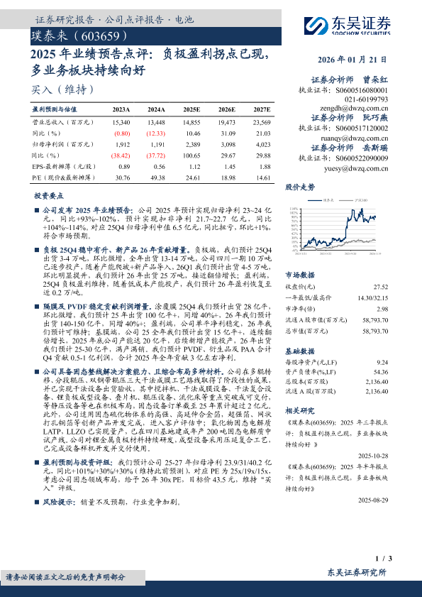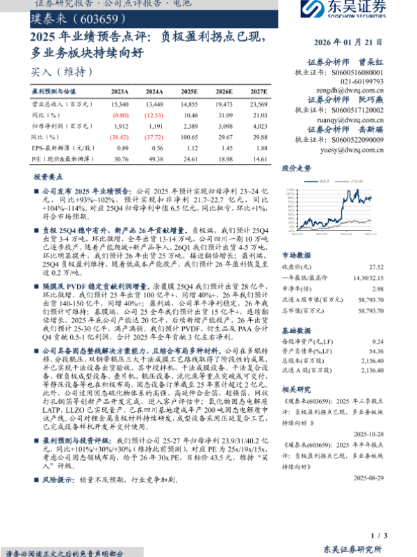 【东吴证券】【202601】2025年业绩预告点评:负极盈利拐点已现,多业务板块持续向好-3页