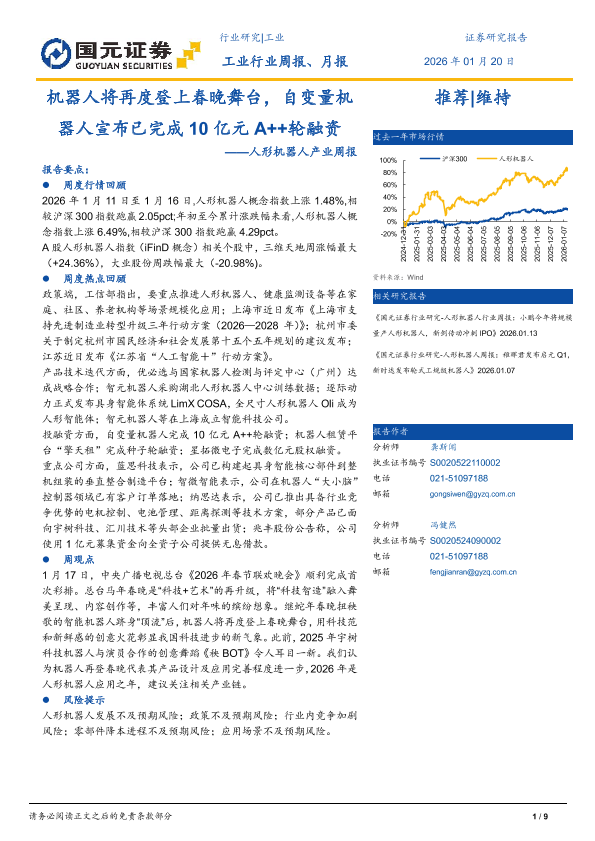 【国元证券】【202601】机器人将再度登上春晚舞台,自变量机器人宣布已完成10亿元A++轮融资-9页