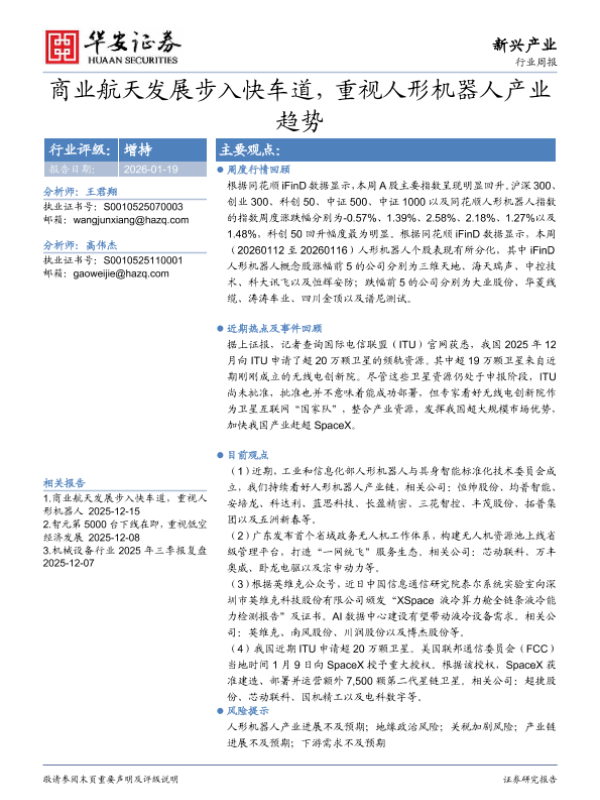 【华安证券】【202601】商业航天发展步入快车道,重视人形机器人产业趋势-9页