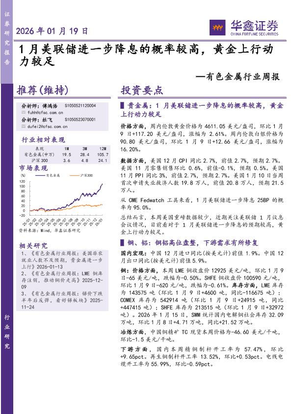 【华鑫证券】【202601】1月美联储进一步降息的概率较高,黄金上行动力较足-20页
