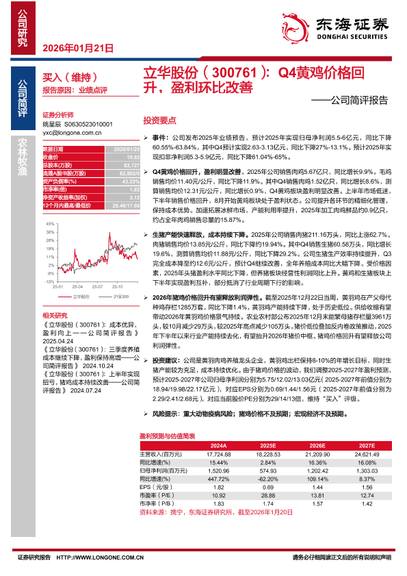 【东海证券】【202601】立华股份(300761):Q4黄鸡价格回升,盈利环比改善-3页