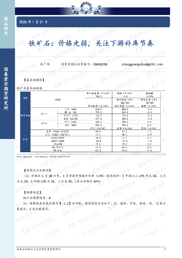 【国泰君安期货】【202601】铁矿石:价格走弱,关注下游补库节奏-2页