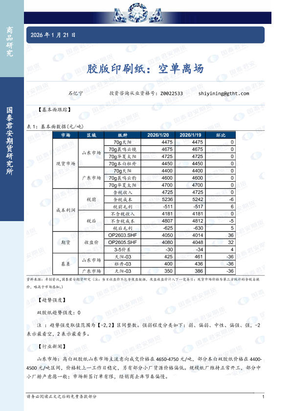 【国泰君安期货】【202601】胶版印刷纸:空单离场-3页