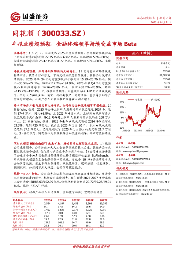 大模型技术 金融终端 牛市受益 同花顺 业绩超预期