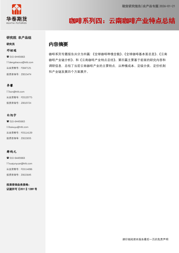 【华泰期货研究院农产品组】【202311】云南咖啡产业特点总结-13页