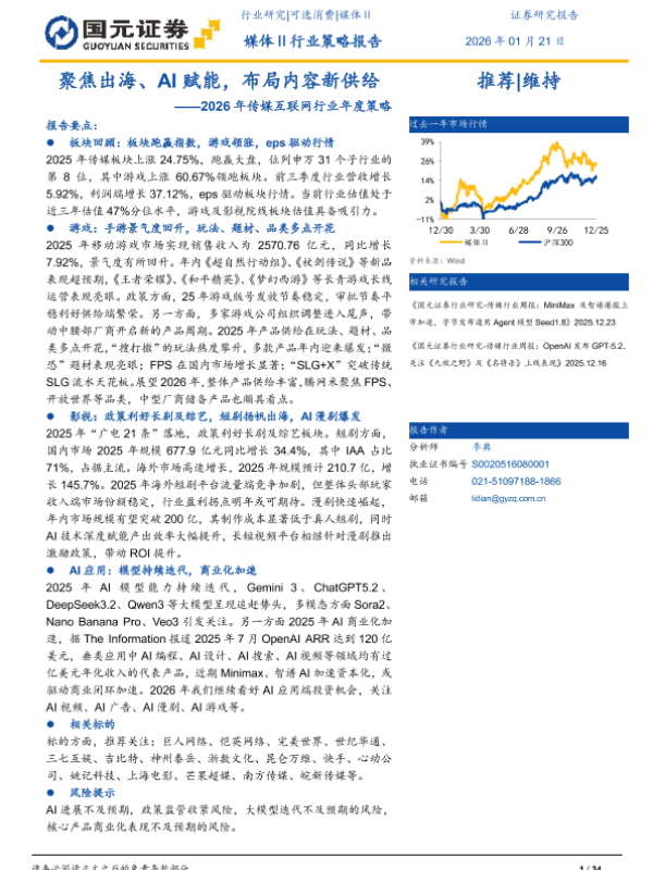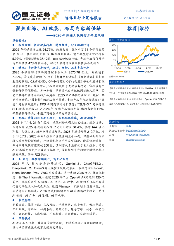 【国元证券】【202512】海、AI赋能,布局内容新供给——2026年传媒互联网行业年度策略-34页