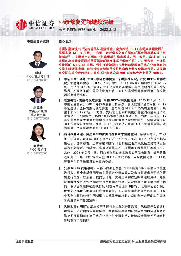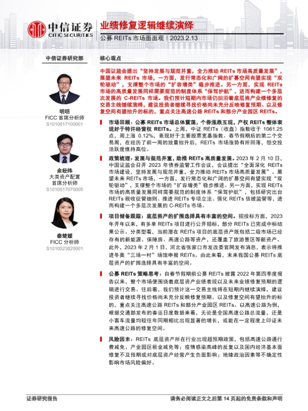 【中信证券】【20230213】公募REITs市场面面观:业绩修复逻辑继续演绎-15页