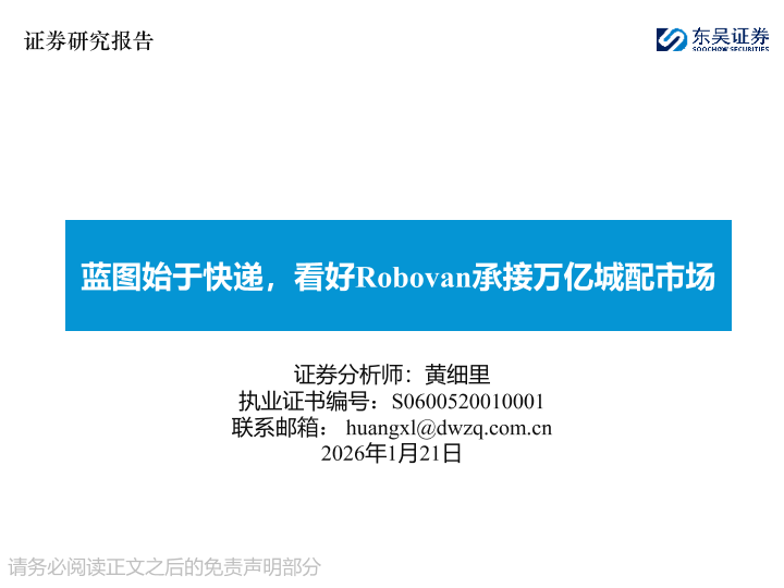 【东吴证券】【202601】蓝图始于快递,看好Robovan承接万亿城配市场-61页