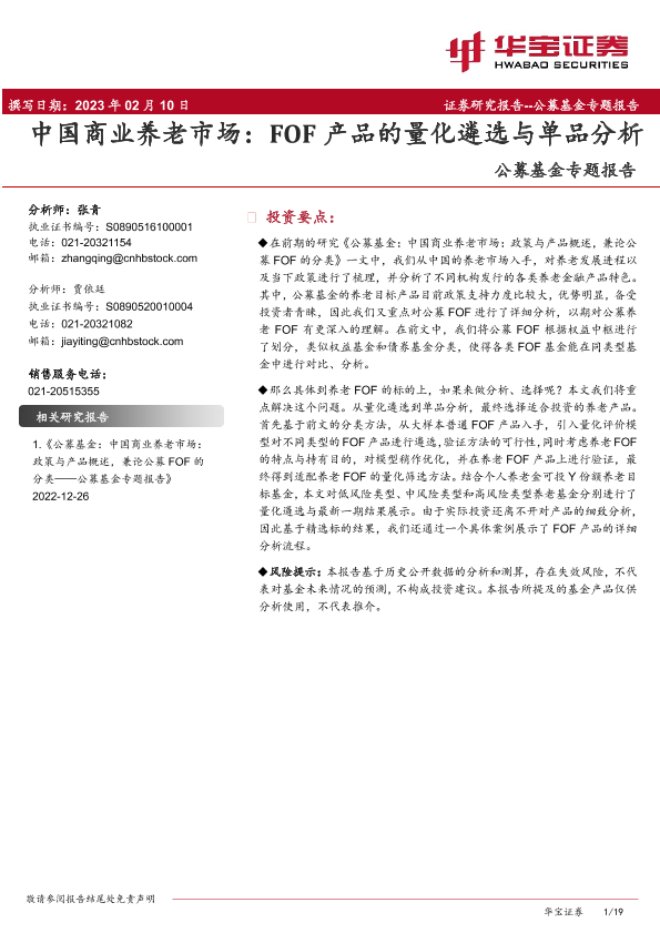 【华宝证券】【20230210】公募基金专题报告:中国商业养老市场,FOF产品的量化遴选与单品分析-19页