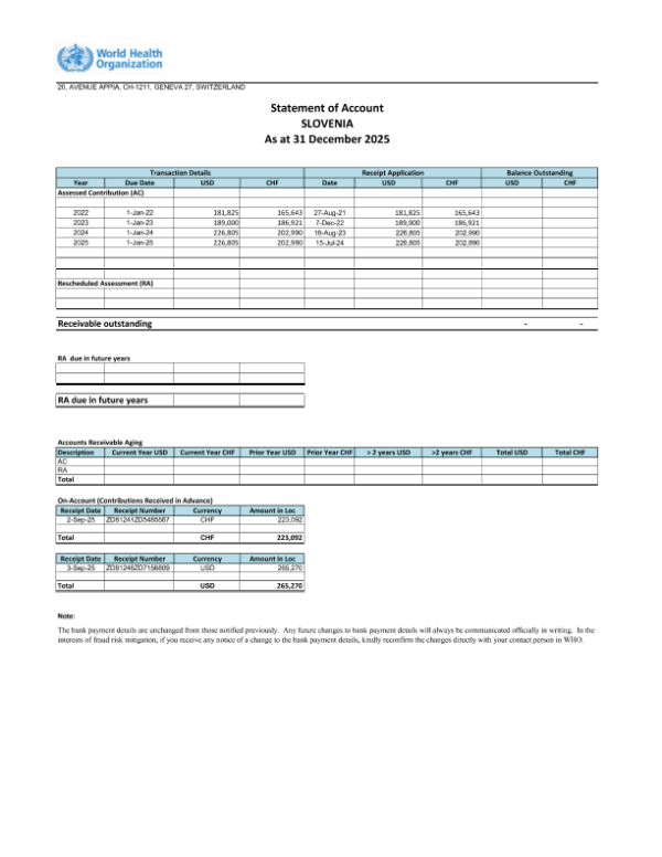【世界卫生组织】【2025】Statement of Account SLOVENIA As at 31 December 2025-1页