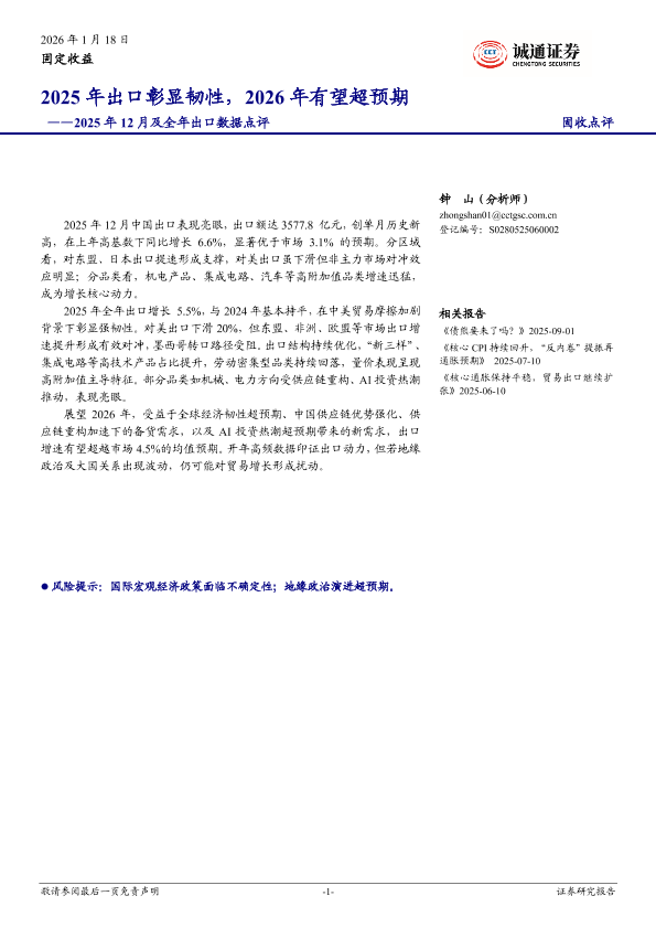 【诚通证券】【202512】2025年出口彰显韧性,2026年有望超预期-9页