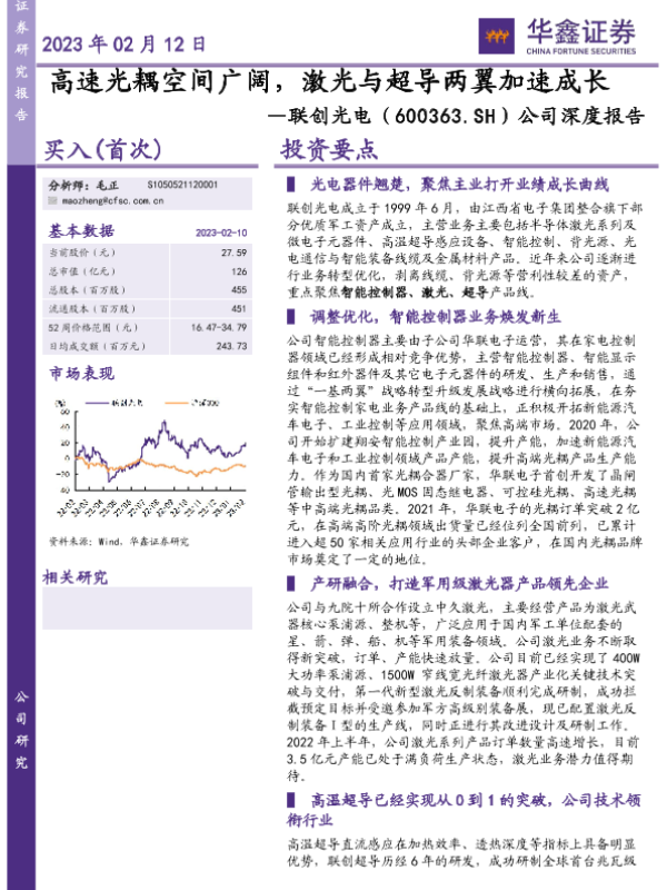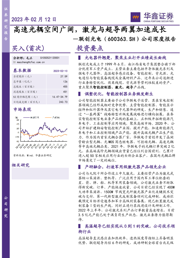 【华鑫证券】【20230212】公司深度报告:高速光耦空间广阔,激光与超导两翼加速成长-25页