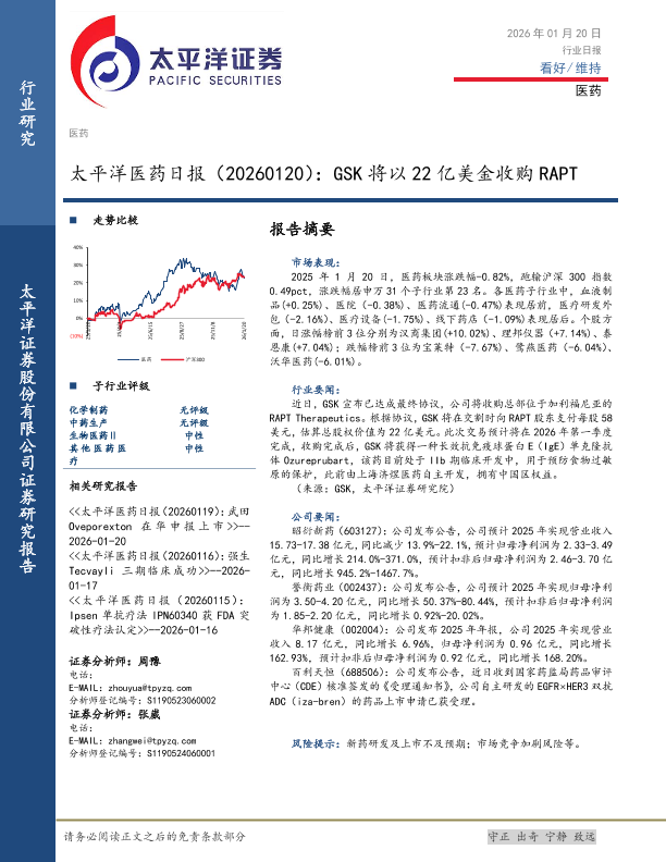 【太平洋证券】【202601】太平洋医药日报(20260120):GSK将以 22亿美金收购 RAPT-3页