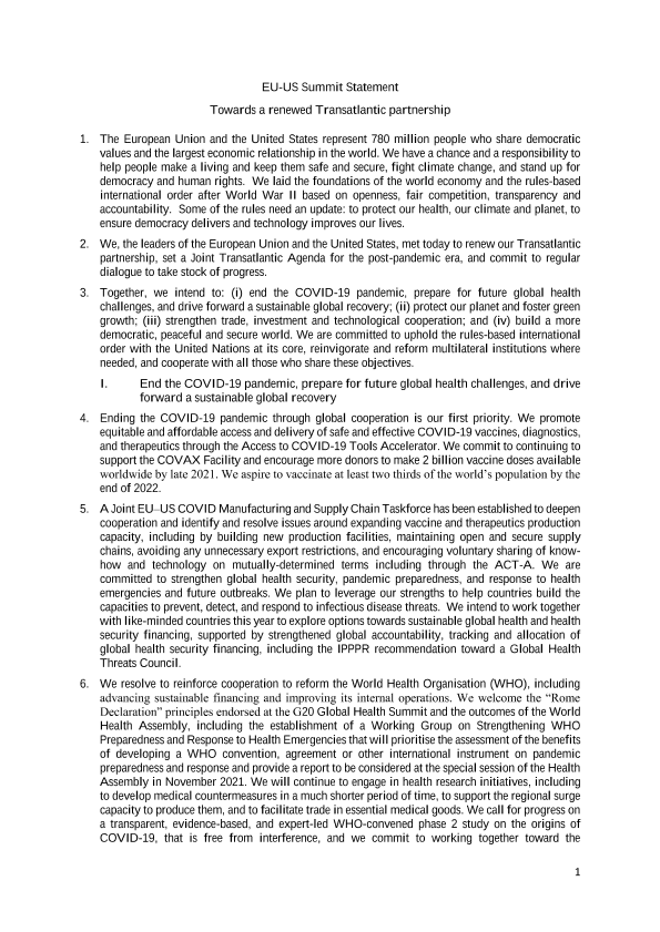 【美欧峰会】【2021】EU-US Summit Statement-6页
