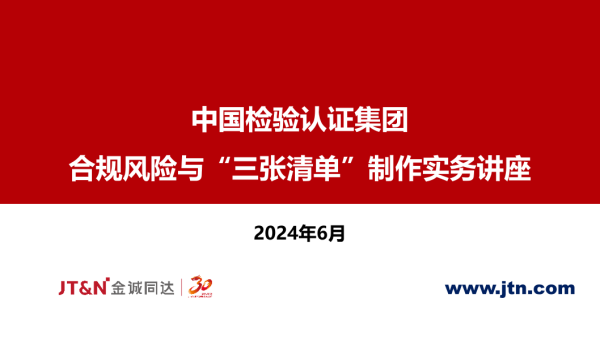 【JT&N金诚同达】【202406】中国检验认证集团合规风险与“三张清单”制作实务讲座-60页