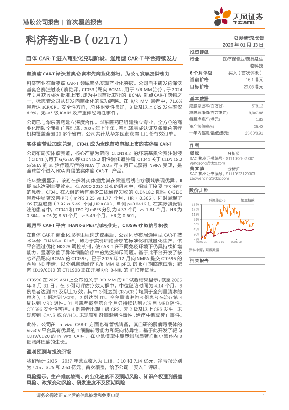 【天风证券】【202601】科济药业-B自体CAR-T进入商业化兑现阶段,通用型CAR-T平台持续发力-45页