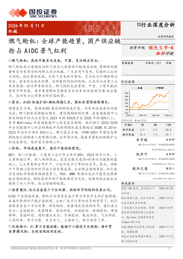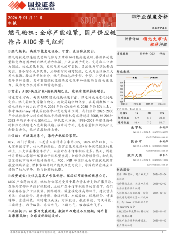 【国投证券】【202601】机械行业燃气轮机:全球产能趋紧,国产供应链抢占AIDC景气红利-41页